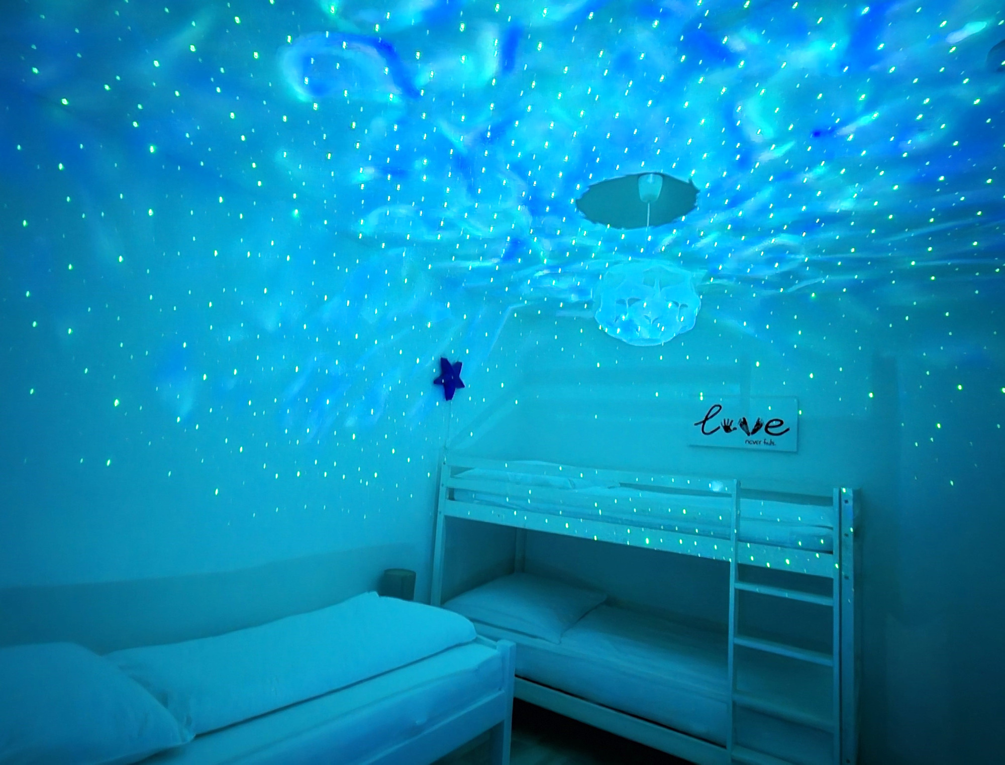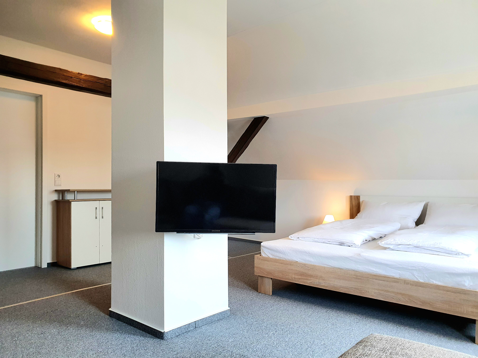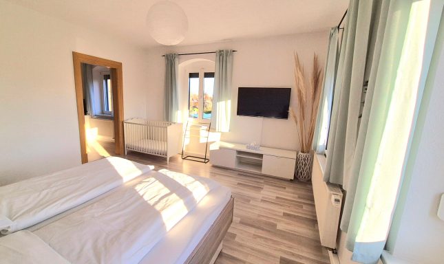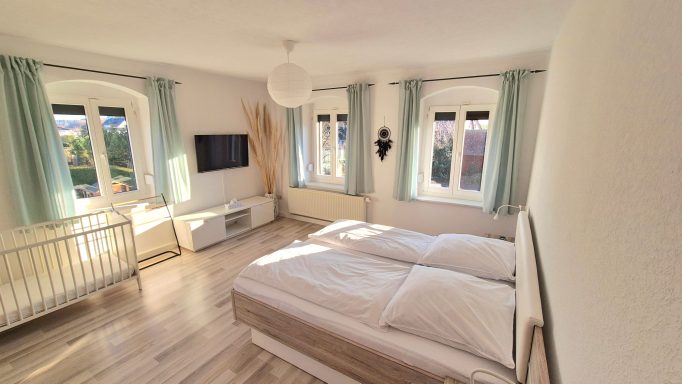 Doppelbett 1,80m*2,00m, 1 Babybett, Smart-TV