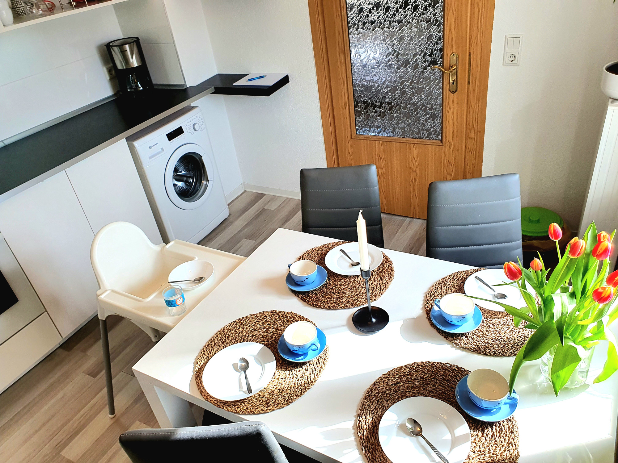 Smart-TV mit Netflix und W-Lan Zugang kostenfrei, Nichtraucher-Wohnung, Sanitätskasten, 2x Kinderhochstuhl,Staubsauger, Reinigungsmaterial, Wäschekorb, Klammern, Wäscheständer, Bügeleisen, Bügelbrett sind vorhanden