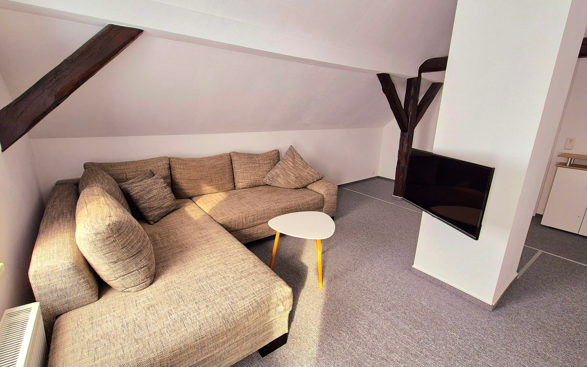 Doppelbett 1,80m*2,00m, Eckcouch mit Schlaffunktion, 1 Babybett, Smart-TV